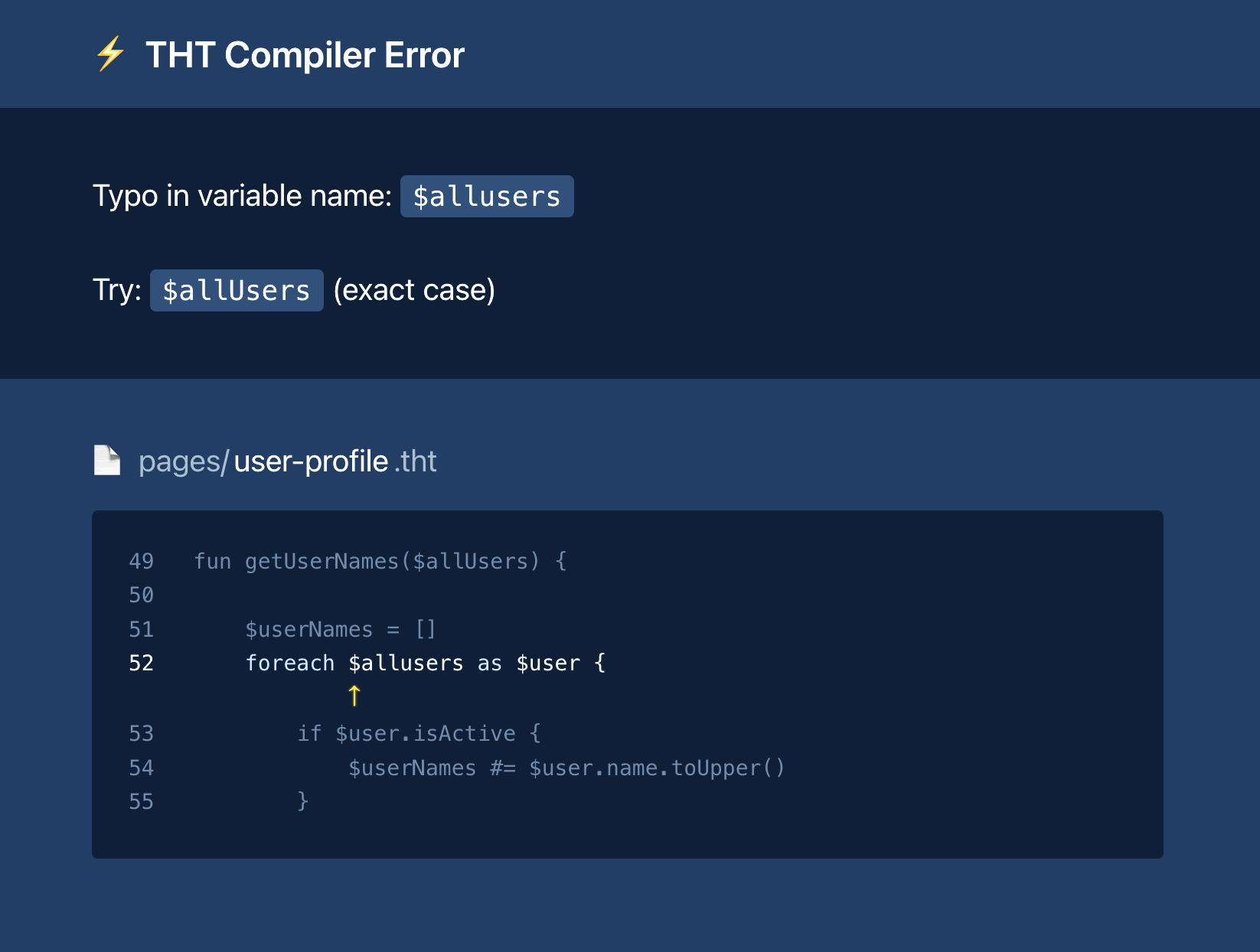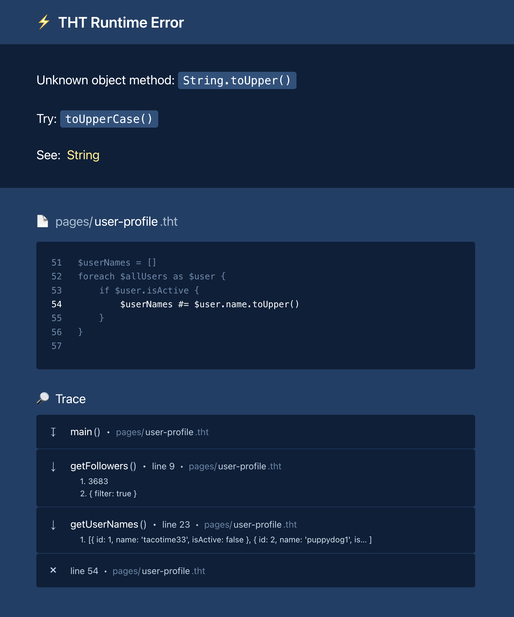 When an error occurs, THT tries to help you can quickly figure out what went wrong and how to fix it.